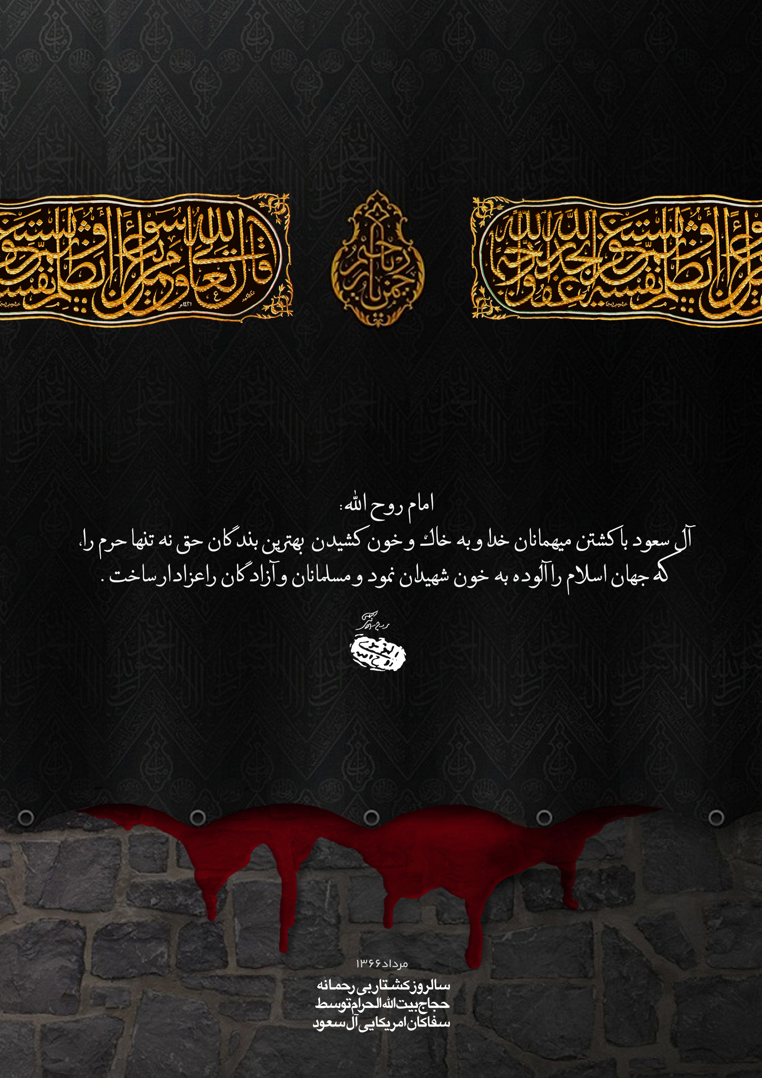 آل سعود با کشتن میهمانان خدا و به خاک و خون کشیدن بهترین بندگان حق نه تنها حرم را، که جهان اسلام را آلوده به خون شهیدان نمود و مسلمانان و آزادگان راعزادار ساخت ... ان شاءالله ما اندوه دلمان را در وقت مناسب با انتقام از امریکا و آل سعود برطرف خواهیم ساخت و داغ و حسرت حلاوت این جنایت بزرگ را بر دلشان خواهیم نهاد، و با برپایی جشن پیروزی حق بر جنود کفر ونفاق و آزادی کعبه از دست نااهلان و نامحرمان به مسجدالحرام وارد خواهیم شد.